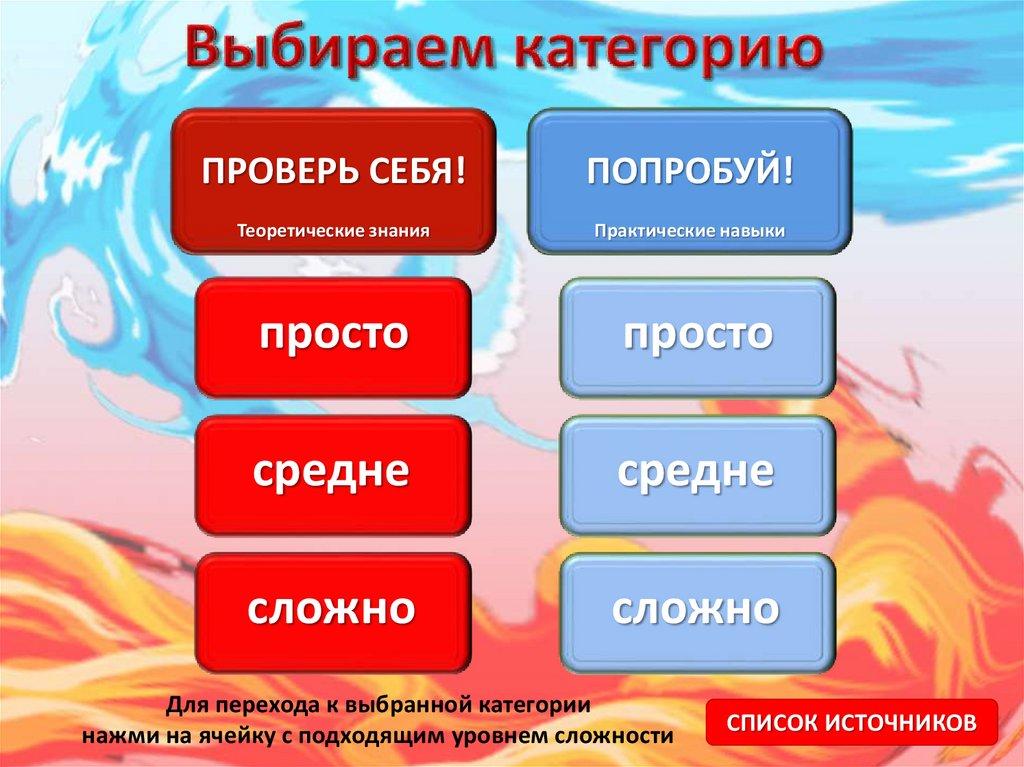 нажми на ячейку с подходящим уровнем сложности