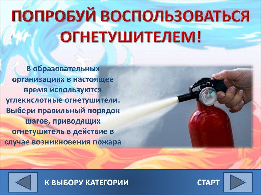огнетушитель в действие в