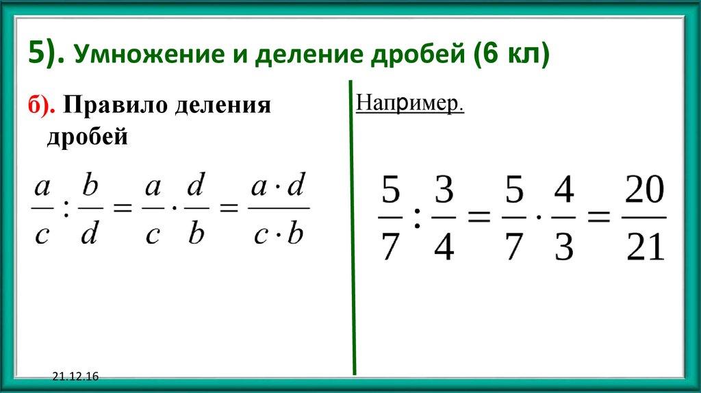 5). Умножение и деление дробей (6 кл)б). Правило деления