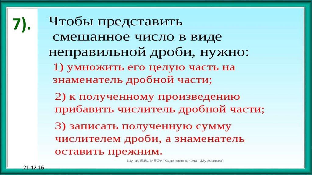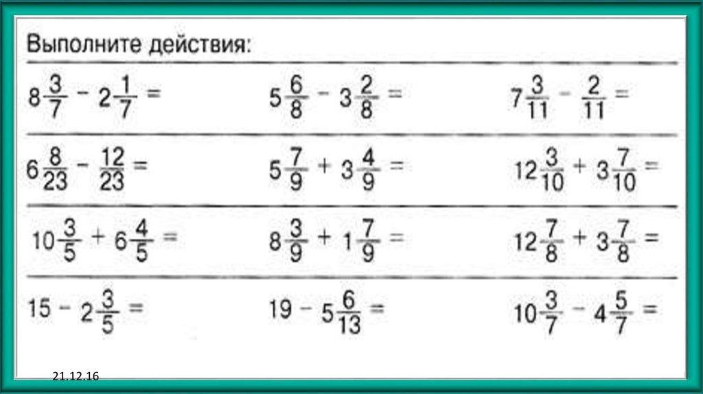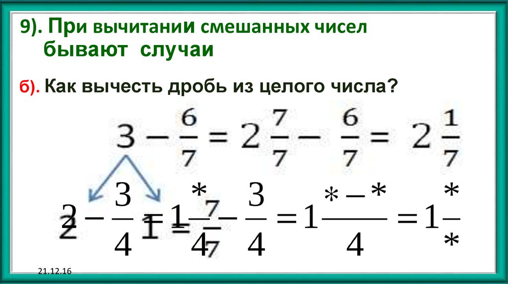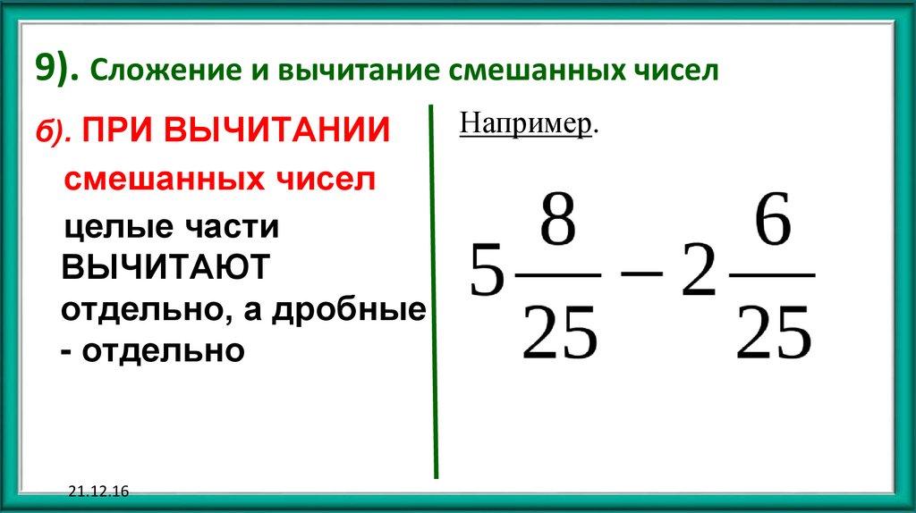 9). Сложение и вычитание смешанных чиселб). ПРИ ВЫЧИТАНИИ