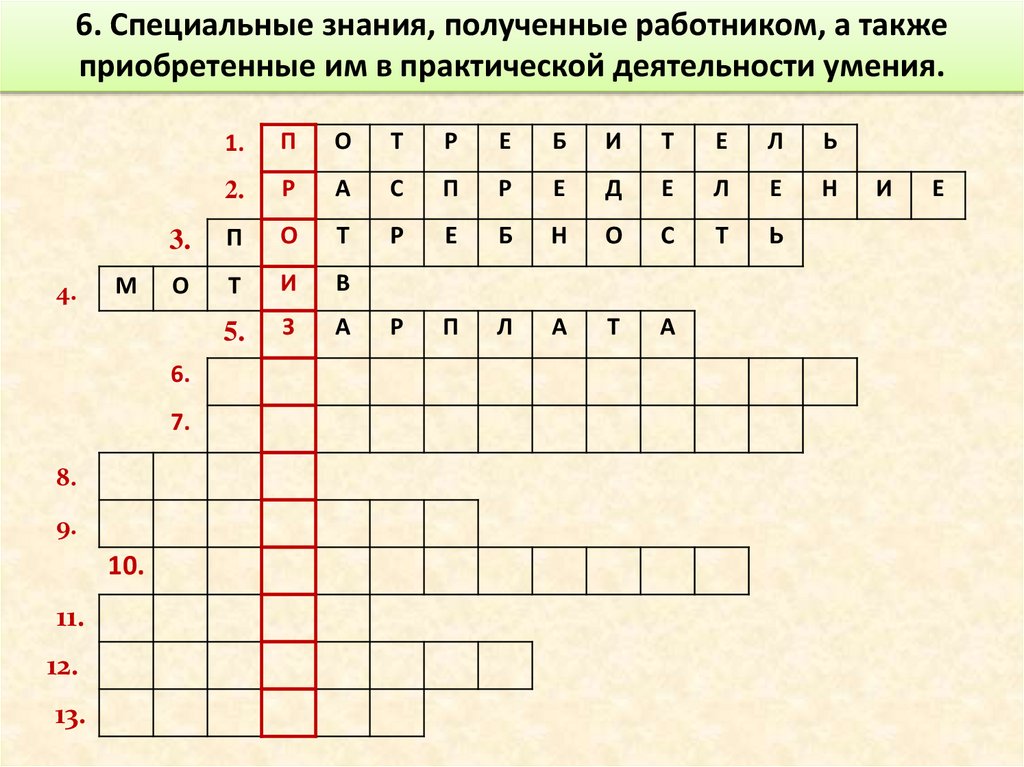 6. Специальные знания, полученные работником, а такжеприобретенные им в практической деятельности умения.