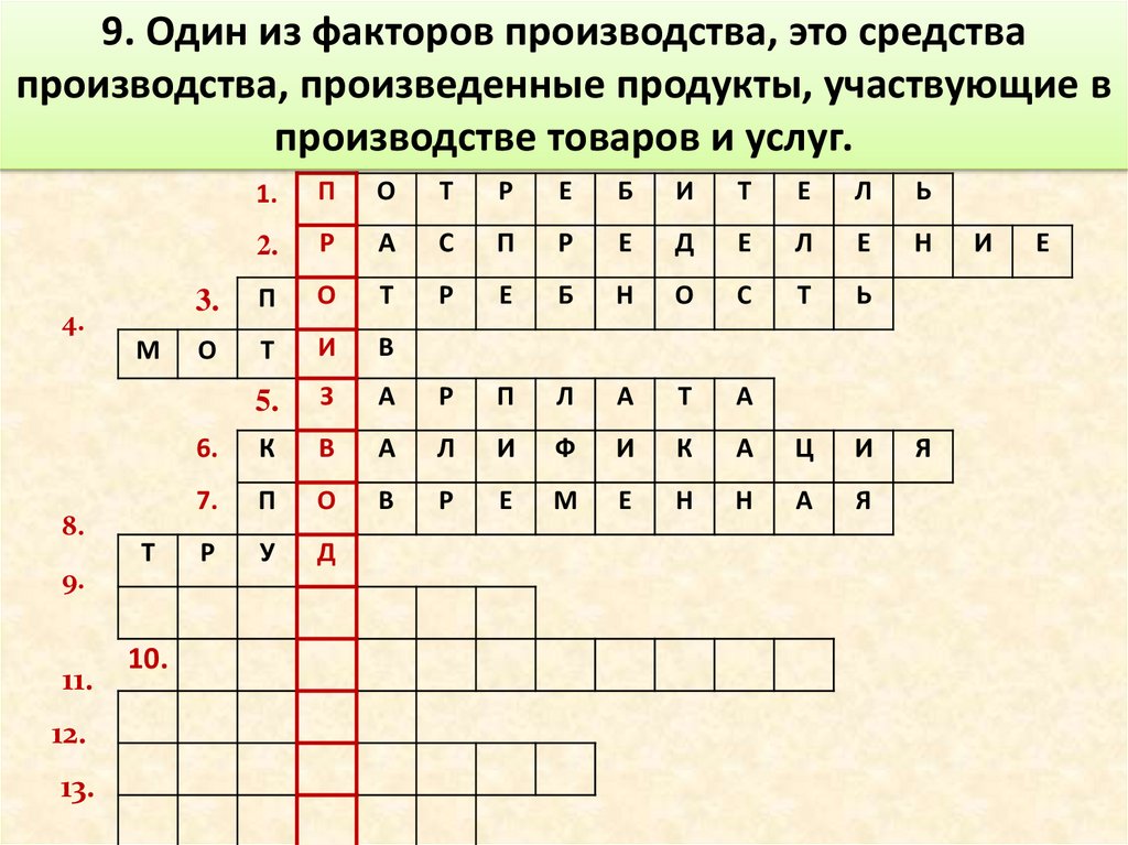 9. Один из факторов производства, это средствапроизводства, произведенные продукты, участвующие в