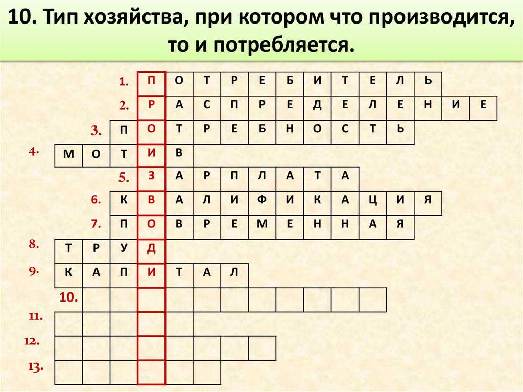 10. Тип хозяйства, при котором что производится,то и потребляется.