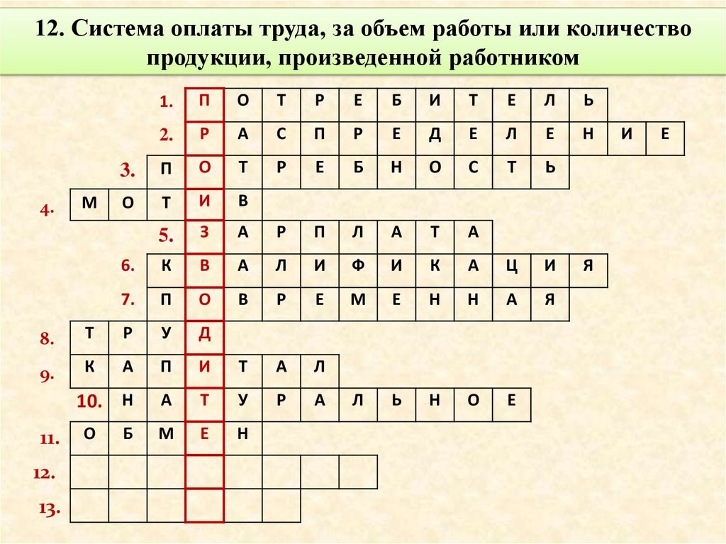 12. Система оплаты труда, за объем работы или количествопродукции, произведенной работником