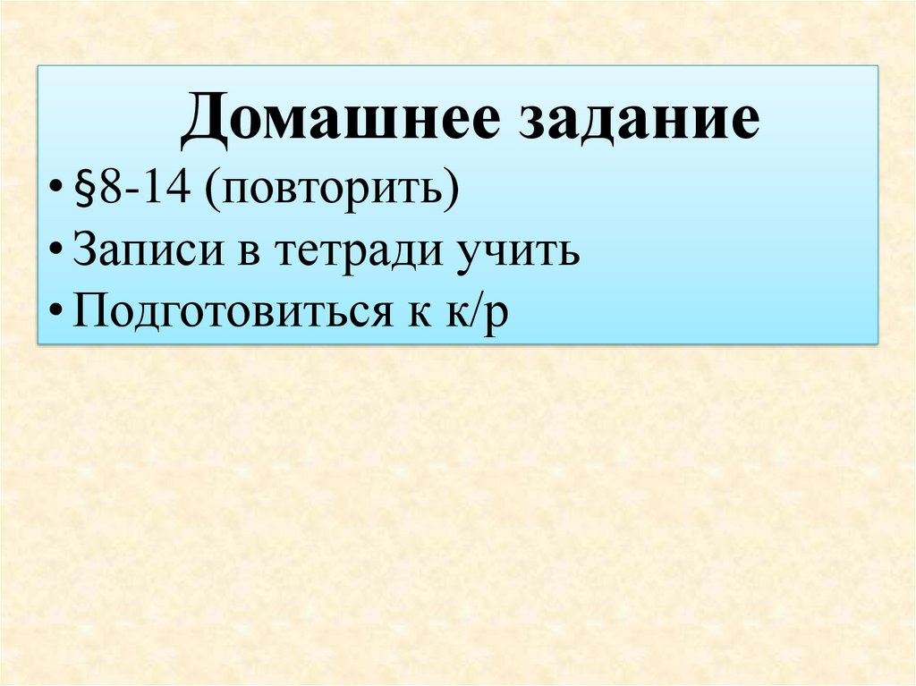 Домашнее задание• §8-14 (повторить)