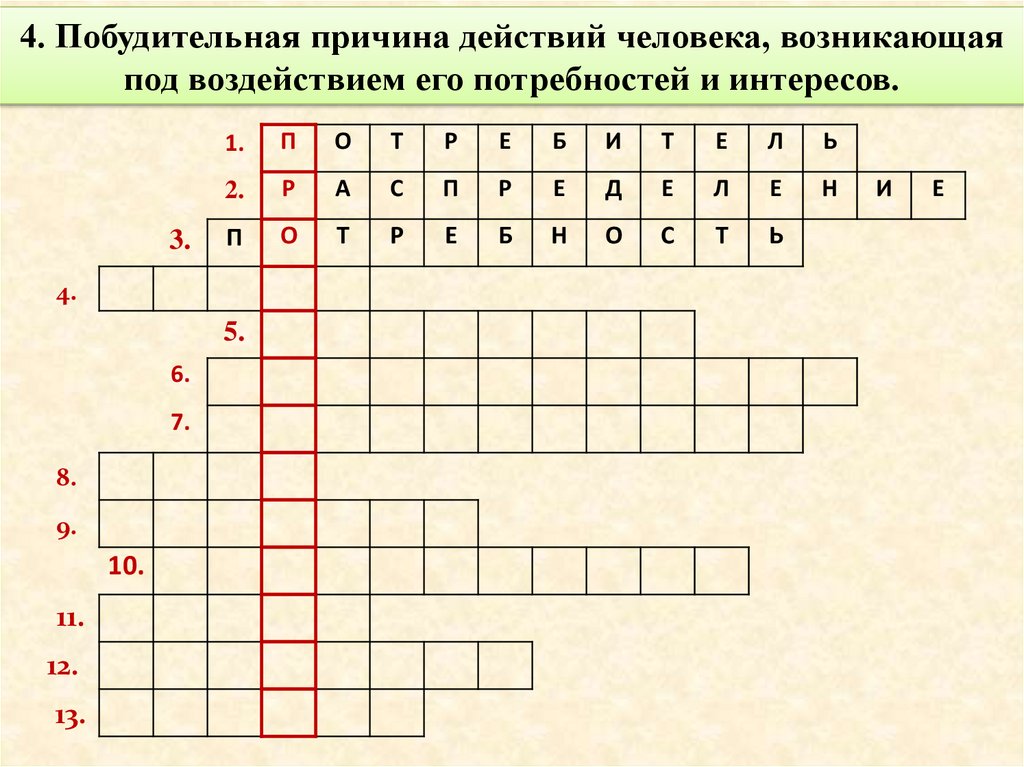 4. Побудительная причина действий человека, возникающаяпод воздействием его потребностей и интересов.