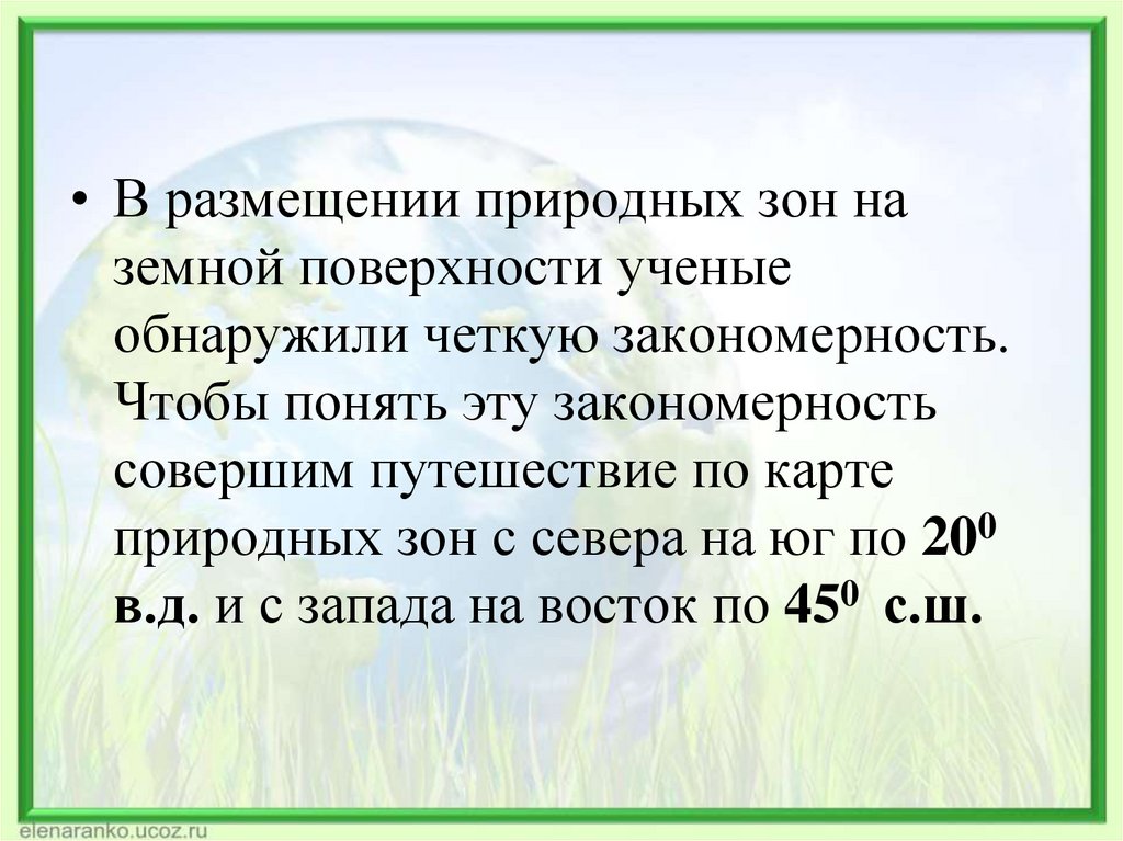 • В размещении природных зон наземной поверхности ученые