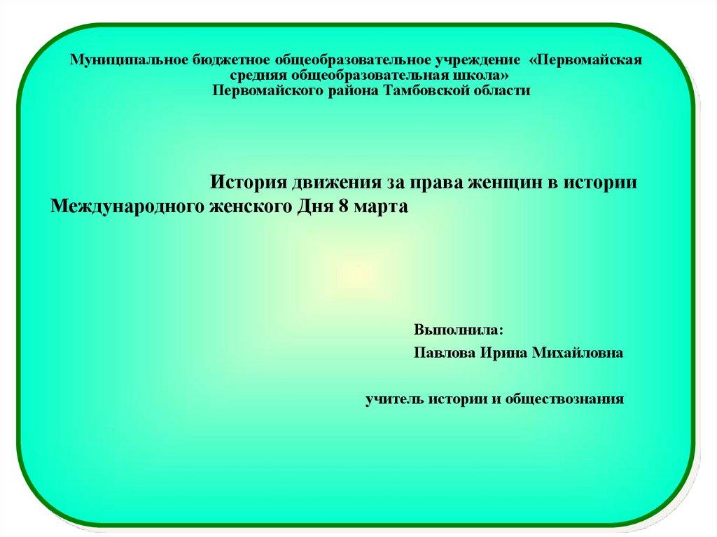 Муниципальное бюджетное общеобразовательное учреждение «Первомайскаясредняя общеобразовательная школа»