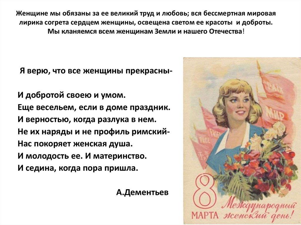 Мы кланяемся всем женщинам Земли и нашего Отечества!