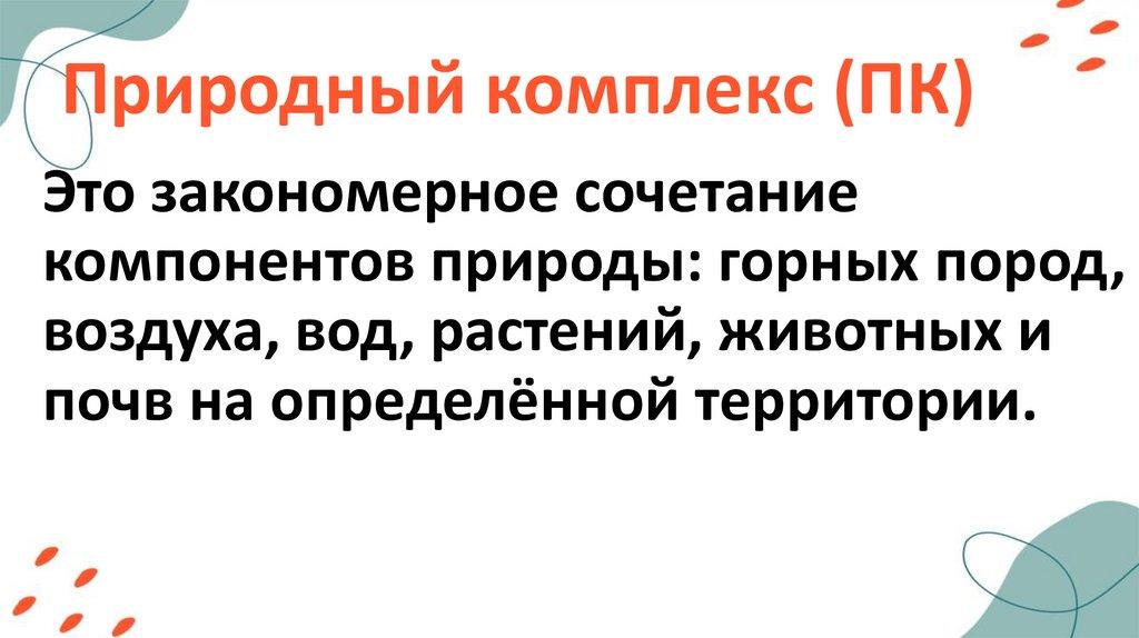 Природный комплекс (ПК)Это закономерное сочетание