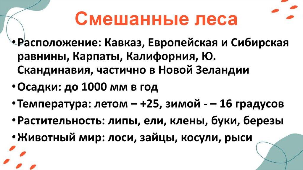 Смешанные леса• Расположение: Кавказ, Европейская и Сибирская