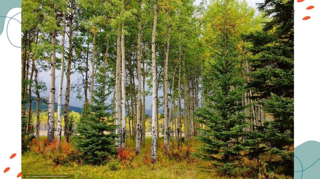 • Растительность: тополь, березы, хвойные породы