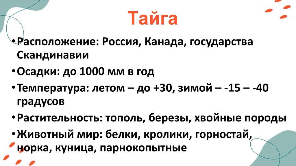 Тайга• Расположение: Россия, Канада, государства
