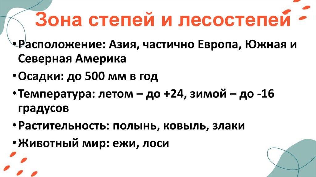 Зона степей и лесостепей• Расположение: Азия, частично Европа, Южная и