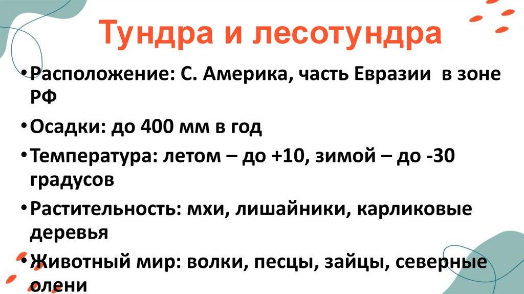 Тундра и лесотундра• Расположение: С. Америка, часть Евразии в зоне