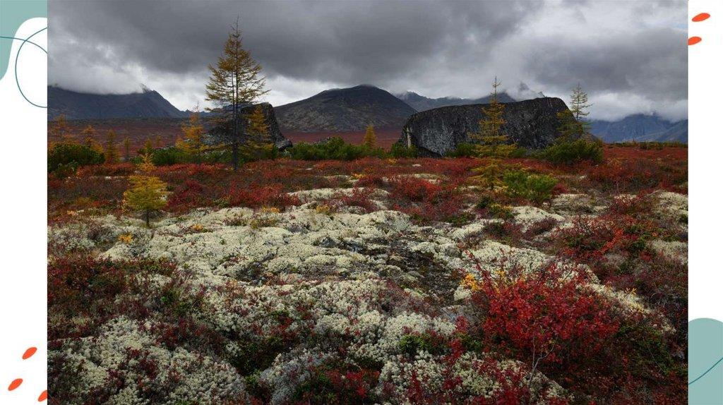 • Растительность: мхи, лишайники, карликовые