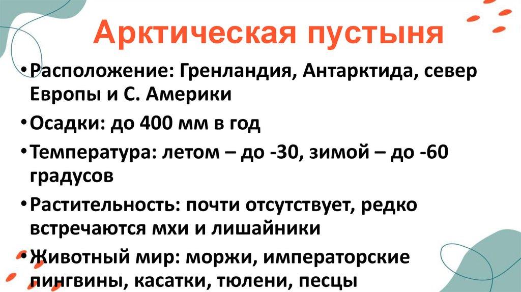 Арктическая пустыня• Расположение: Гренландия, Антарктида, север