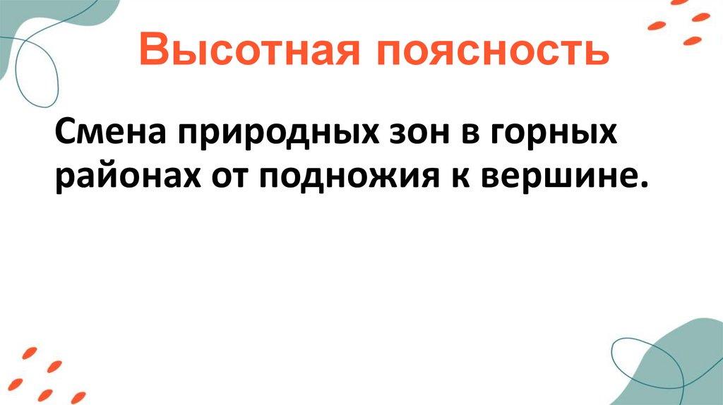Географическая зональность (природные зоны) и высотная поясность