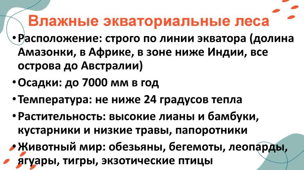 Влажные экваториальные леса• Расположение: строго по линии экватора (долина