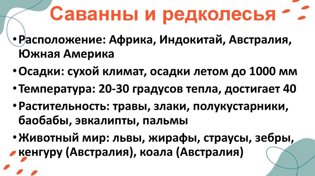 Саванны и редколесья• Расположение: Африка, Индокитай, Австралия,