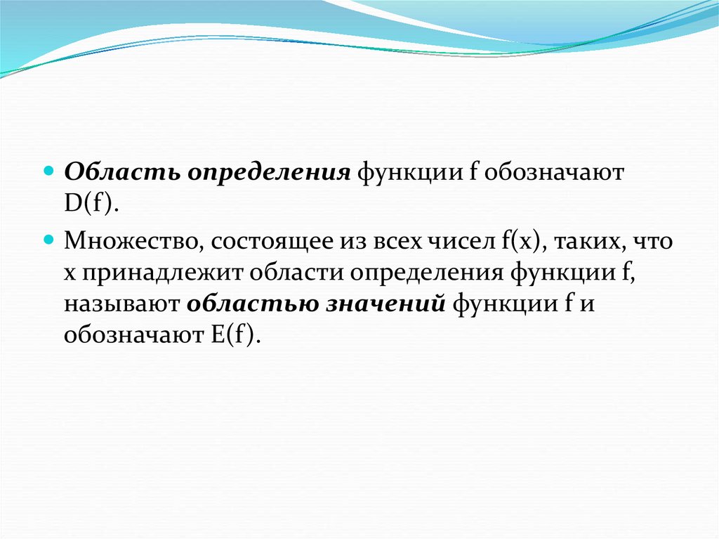 Определение. Числовой функцией с областьюопределения D называется соответствие при