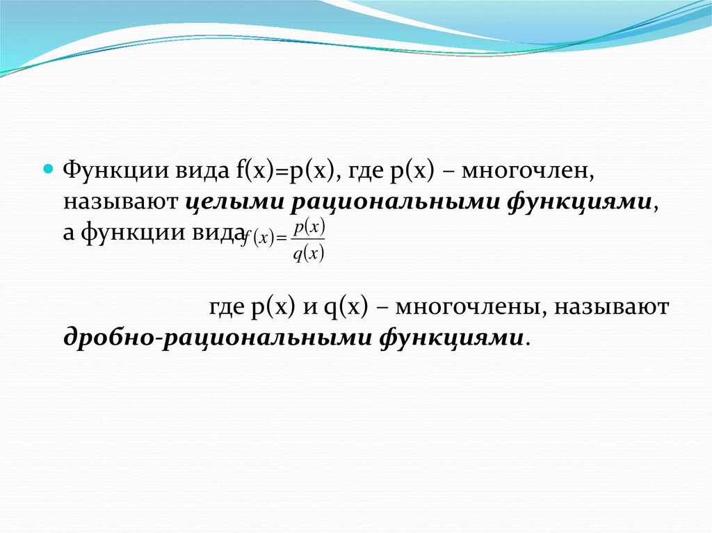 Функции вида f(x)=p(x), где p(x) – многочлен,называют целыми рациональными функциями,