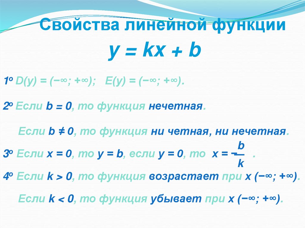 4о Если k > 0, то функция возрастает при х (−∞; +∞).
