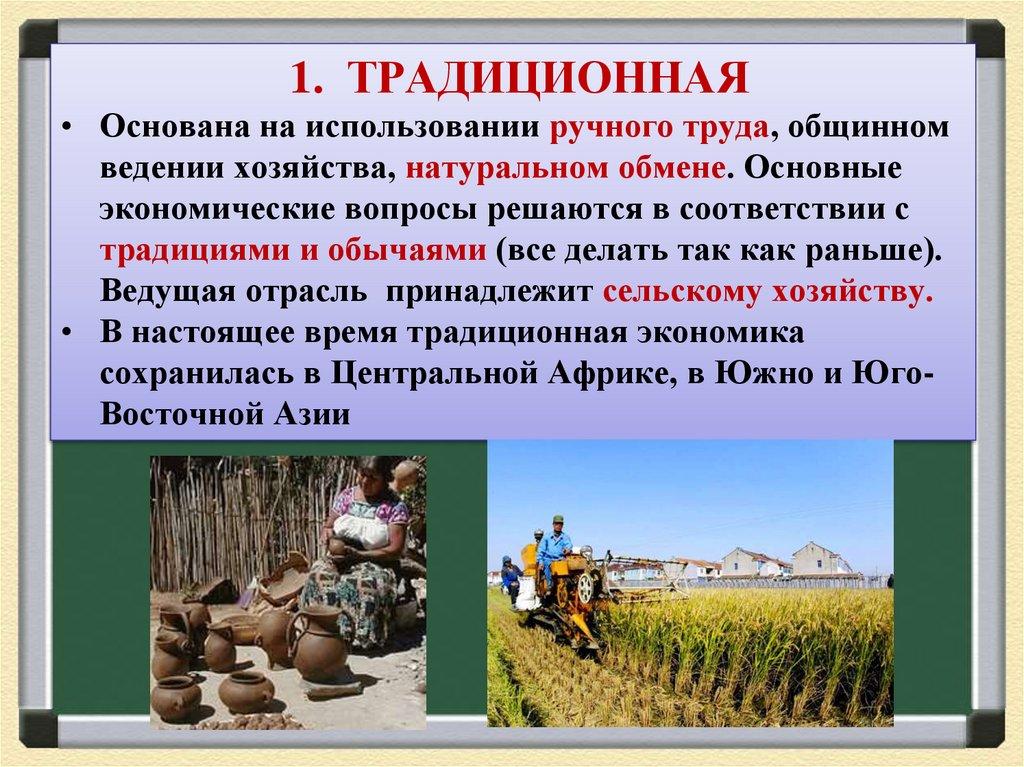 1. ТРАДИЦИОННАЯ• Основана на использовании ручного труда, общинном