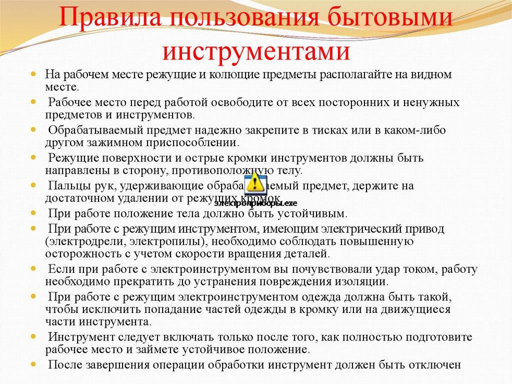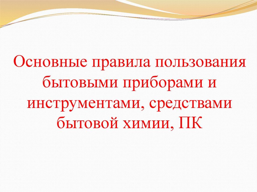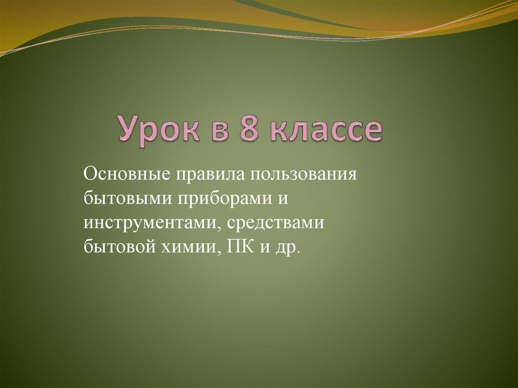 Основные правила пользования бытовыми приборами и инструментами, средствами бытовой химии, ПК и др. Урок в 8 классе