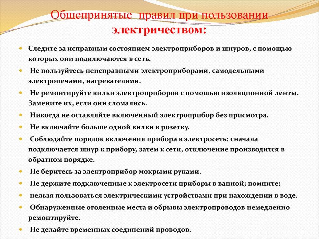 Следите за исправным состоянием электроприборов и шнуров, с помощью