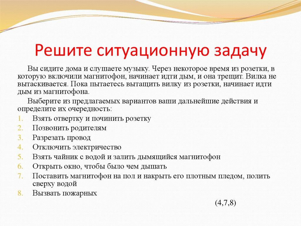 Решите ситуационную задачуВы сидите дома и слушаете музыку. Через некоторое время из розетки, в