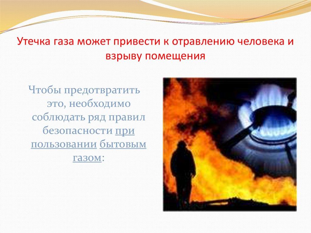 Утечка газа может привести к отравлению человека ивзрыву помещения