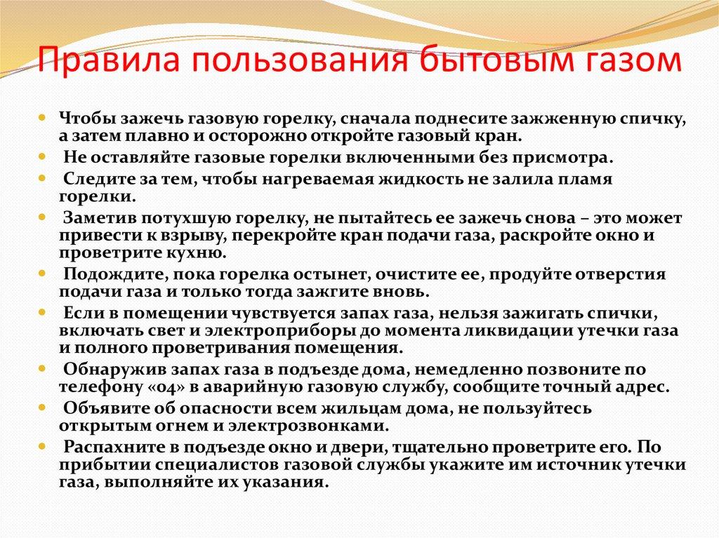 Безопасное обращение с бытовым газомБытовой газ не имеет