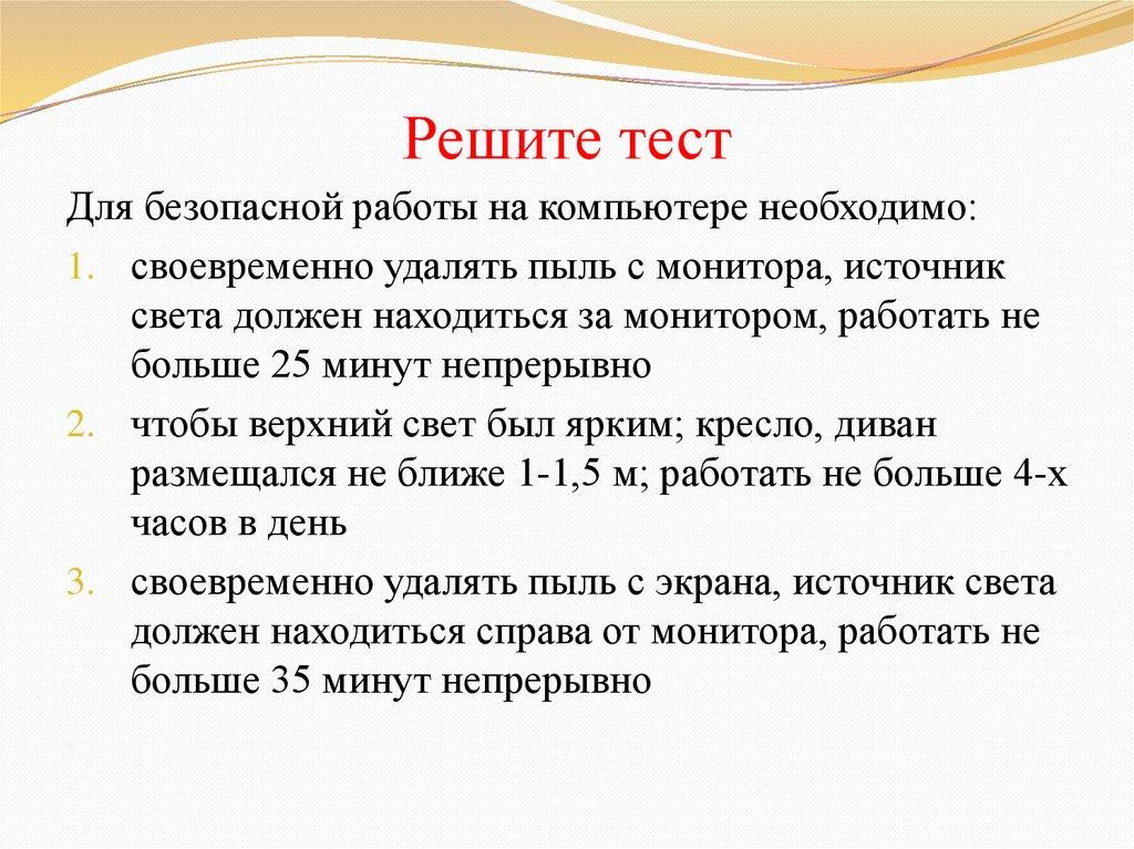 Прежде чем начать работать на компьютере, пройдите обследование у врачаокулиста. Если имеются нарушения зрения, то до начала работы на
