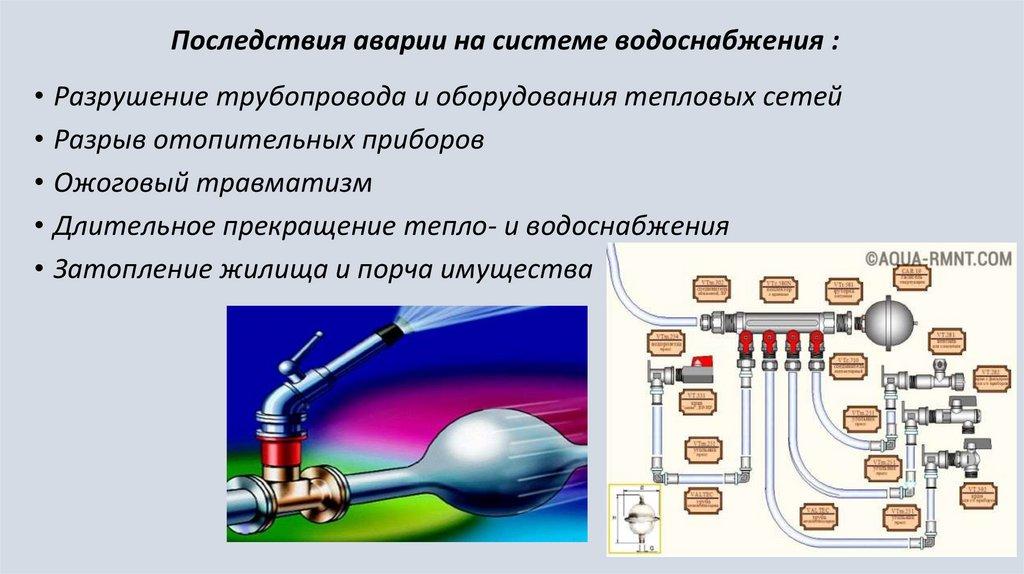 Аварии на системах водоснабженияповреждение или выход из строя систем коммунальноговодоснабж