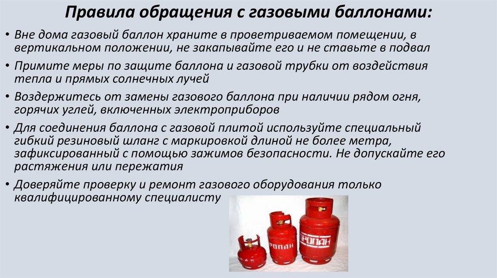 Правила обращения с газовыми баллонами:• Вне дома газовый баллон храните в проветриваемом помещении, в