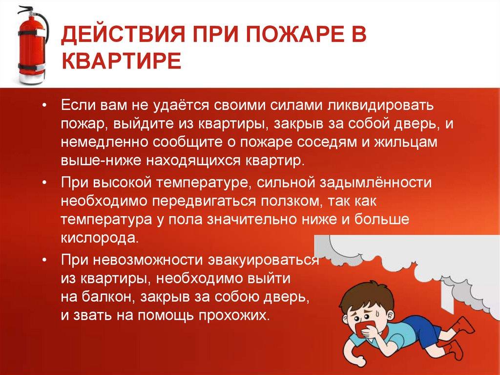 пожар, выйдите из квартиры, закрыв за собой дверь, и