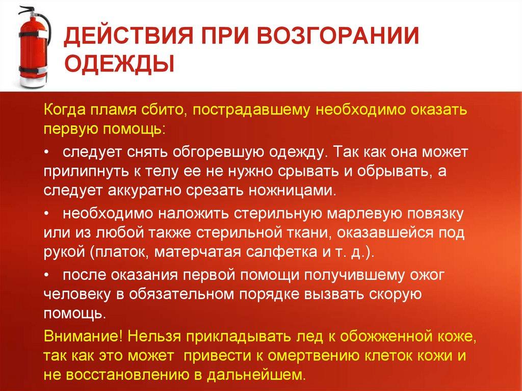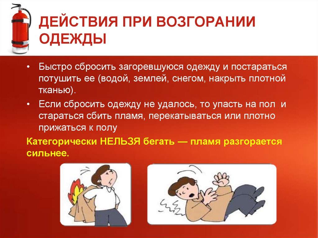 ДЕЙСТВИЯ ПРИ ВОЗГОРАНИИОДЕЖДЫ