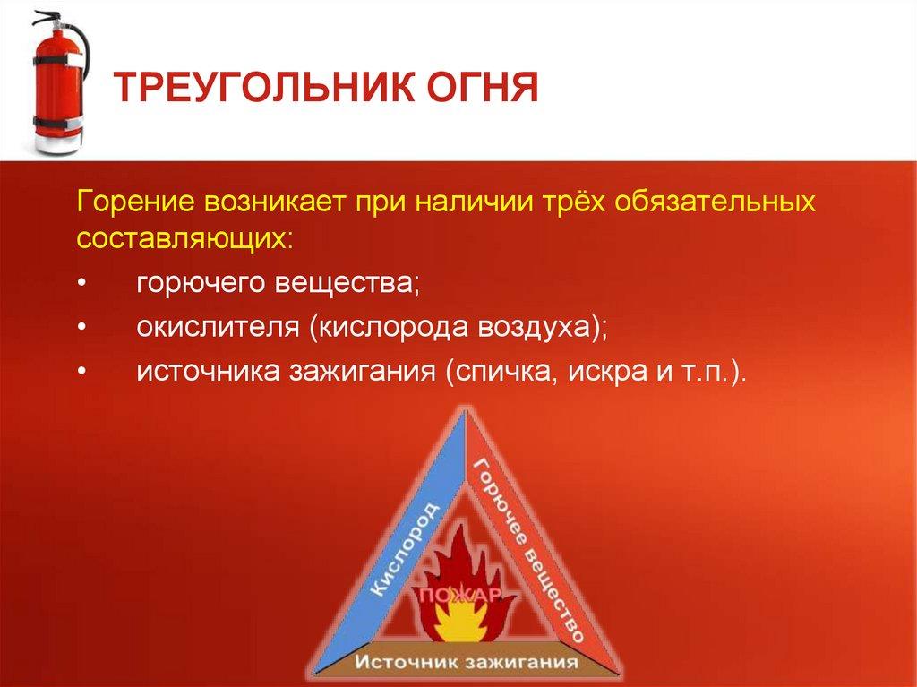 ТРЕУГОЛЬНИК ОГНЯГорение возникает при наличии трёх обязательных