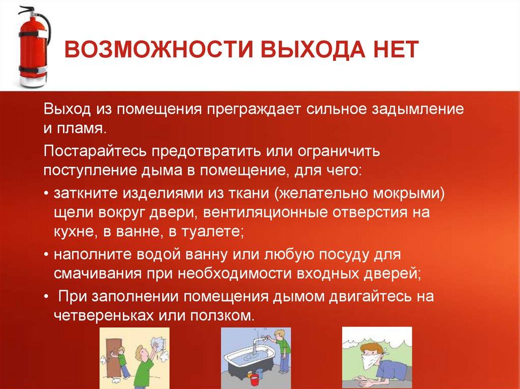 ВОЗМОЖНОСТИ ВЫХОДА НЕТВыход из помещения преграждает сильное задымление