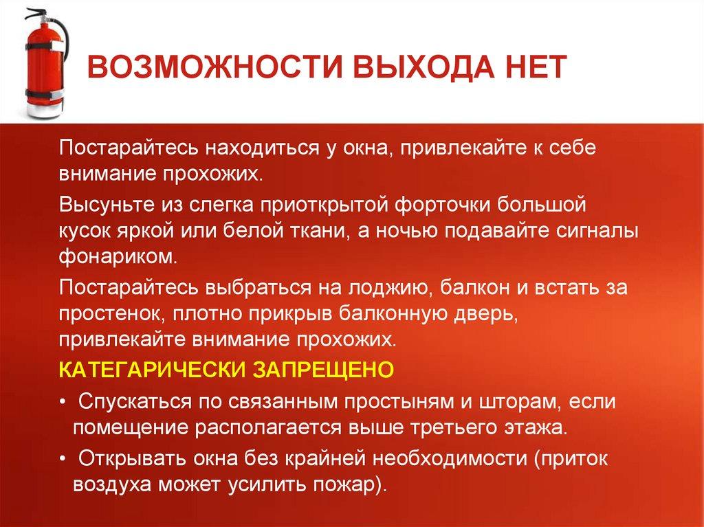 ВОЗМОЖНОСТИ ВЫХОДА НЕТПостарайтесь находиться у окна, привлекайте к себе
