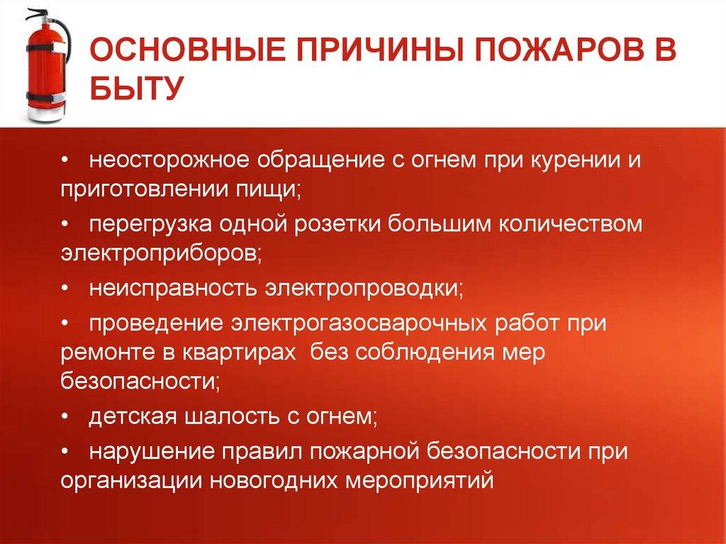 ОСНОВНЫЕ ПРИЧИНЫ ПОЖАРОВ ВБЫТУ