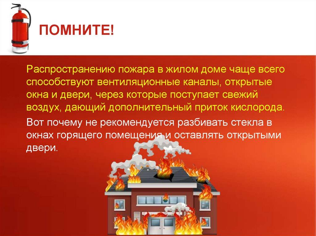 ПОМНИТЕ!Распространению пожара в жилом доме чаще всего