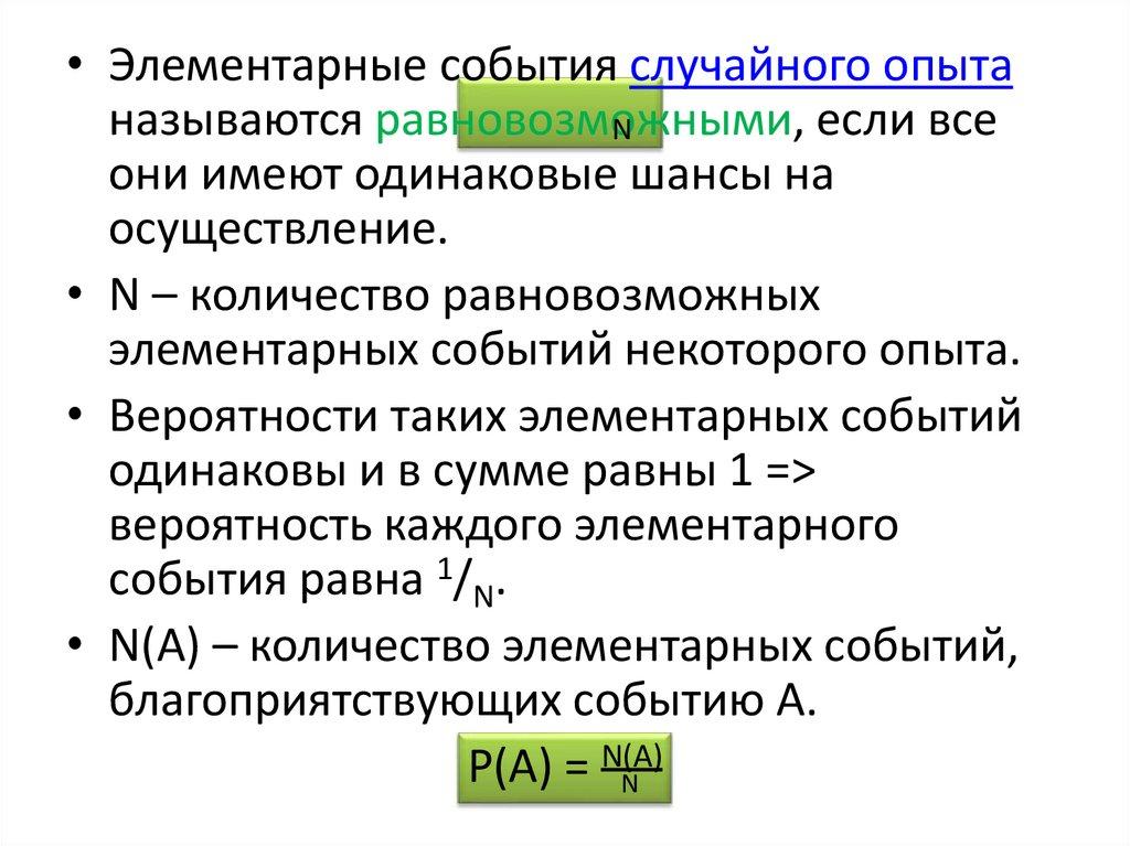 • N – количество равновозможных