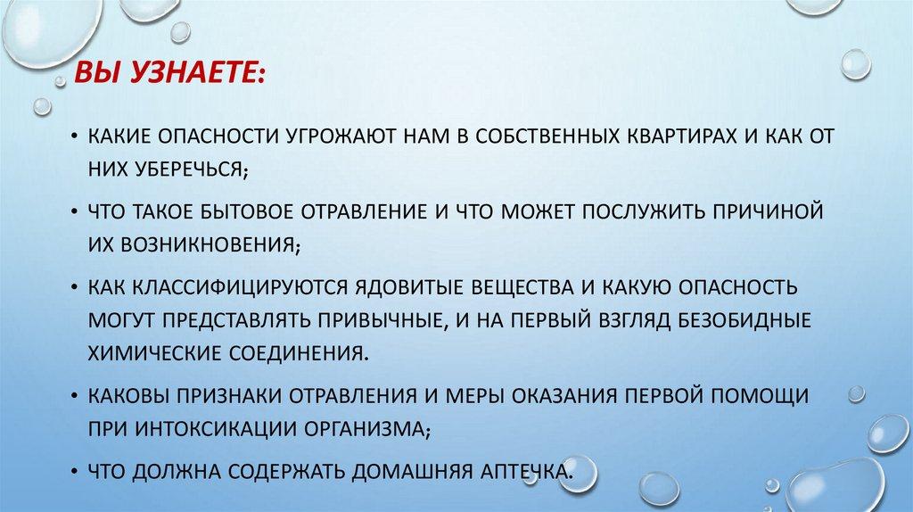 Основные опасности в быту. Отравления. Первая помощь при отравлениях