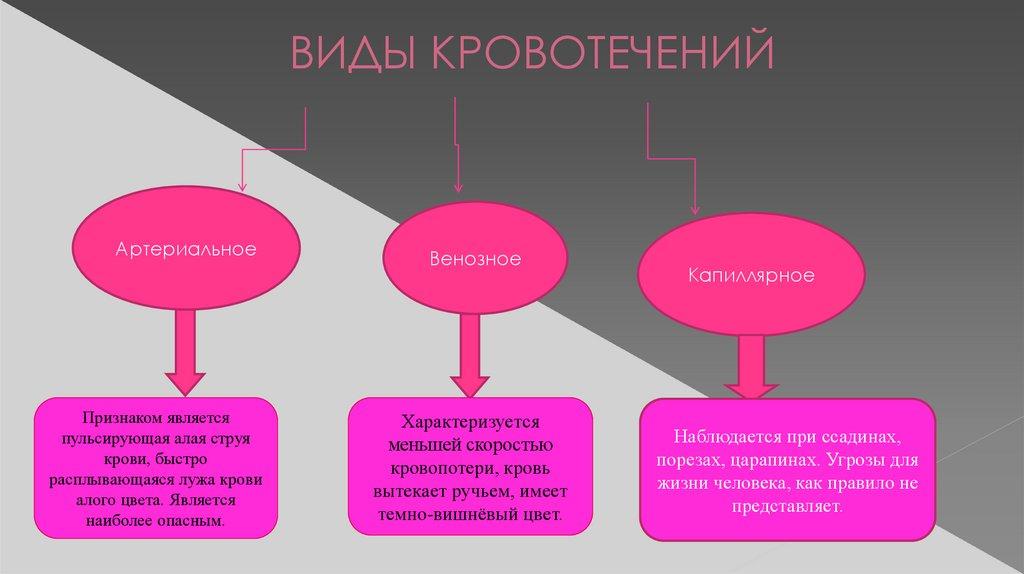 ВИДЫ КРОВОТЕЧЕНИЙАртериальное