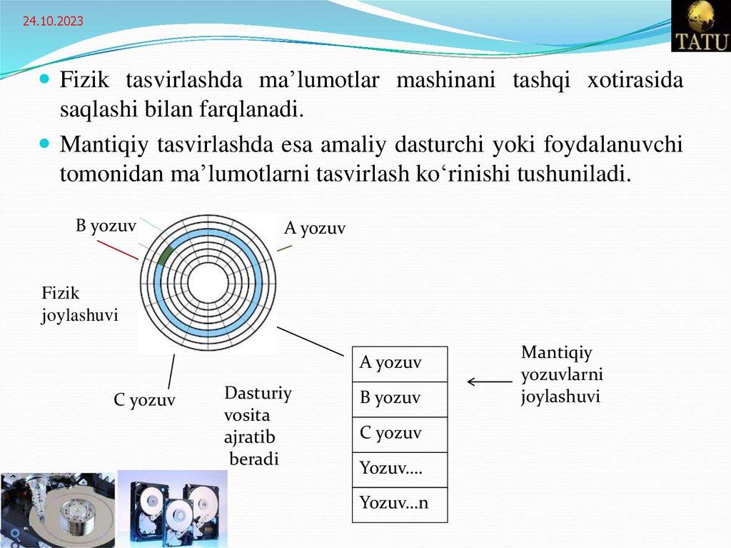 2.Ma’lumotlarni fizik va mantiqiy tavsifi.