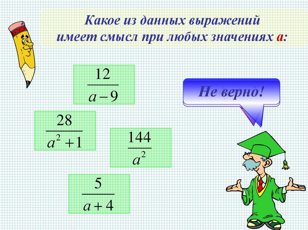 Какое из данных выраженийимеет смысл при любых значениях а: