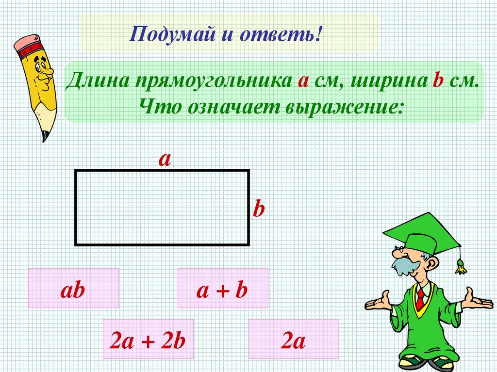 Подумай и ответь!Длина прямоугольника а см, ширина b cм.