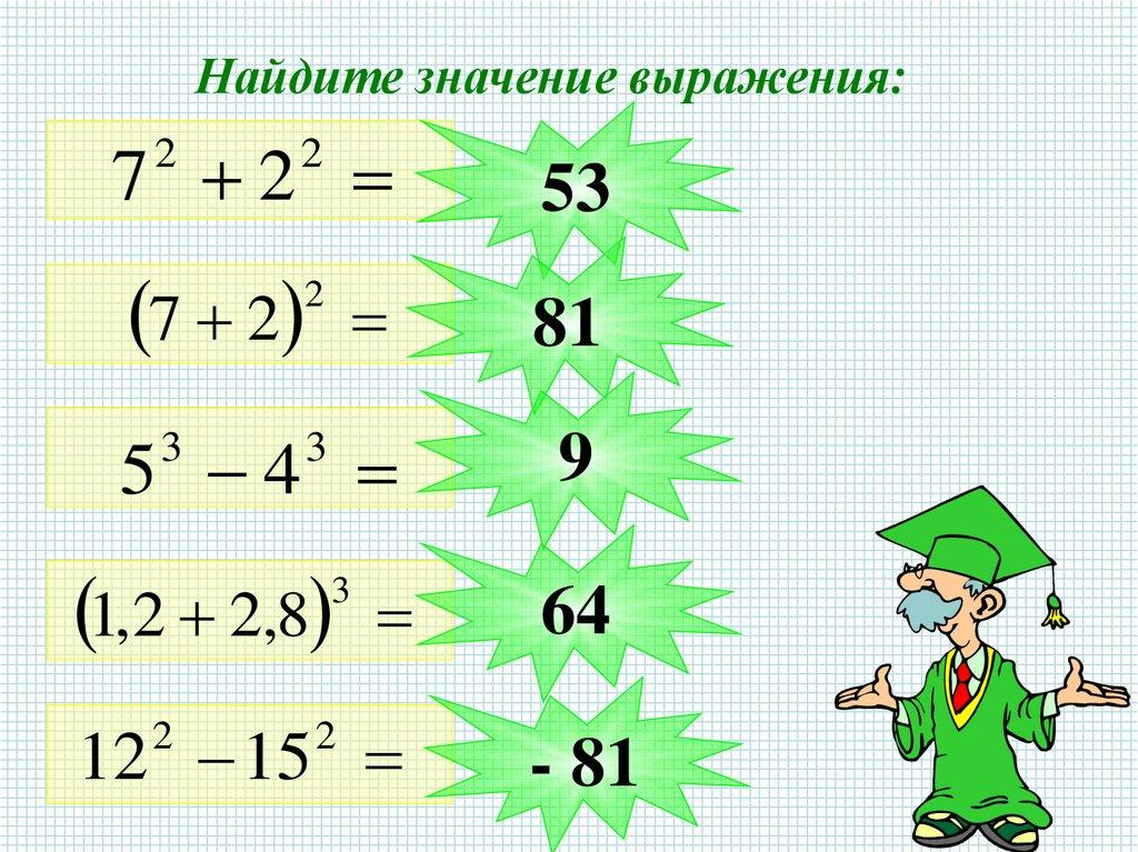 Найдите значение выражения:7 2